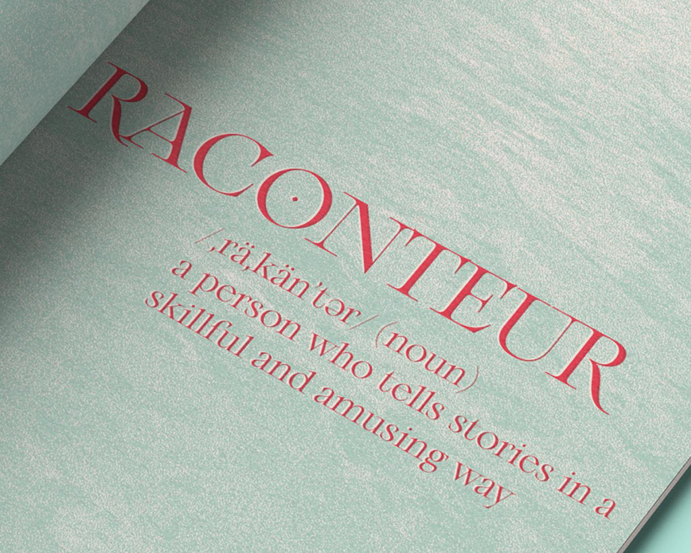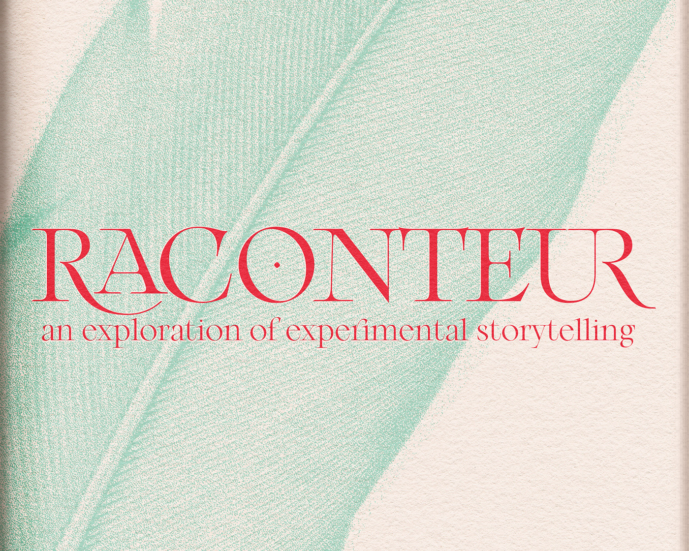 Raconteur is a book documenting the process and outcomes of telling one story in a variety of non-traditional ways. Storytelling is part of the human condition, and there are as many methods of communicating stories as there are stories to tell. My capstone is an exploration of non-traditional storytelling in order to document the way the method alters the story itself. Titled Raconteur, a word meaning “a person who tells anecdotes in a skillful and amusing way”, I aimed to explore the gray area that occurs when you blur the lines between author and audience.